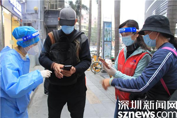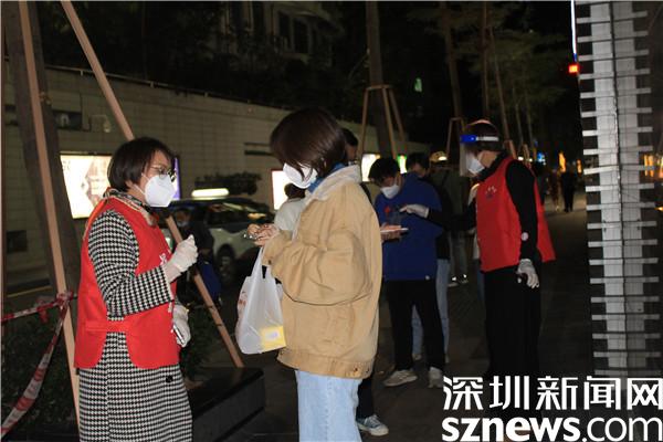 “楊妹,我來了,還帶來了一個人。”13日晚,正在羅湖區(qū)桂園街道老圍社區(qū)禧程酒店核酸檢測點忙碌的社工楊女士,接到志愿者溫寶珍的電話。溫寶珍從“0107疫情”開始以來,每天都在核酸檢測點協(xié)助核酸檢測,這晚她把自己的兒媳婦吳永霞也帶來了?!捌牌艅倧钠渌鐓^(qū)的核酸檢測點做完義工回來,聽說老圍社區(qū)需要人,放下飯碗就來了。婆婆這么大年紀了還沖在前面,我做兒媳婦的,怎么也要向婆婆學習啊?!眳怯老紝ι绻ふf。“應該的應該的,疫情當前,每個人都有義務出來與病毒作戰(zhàn),光是靠社區(qū)工作者不行,他們太累了?!睖貙氄溥呎f邊幫兒媳穿好義工服,把粵核酸的二維碼交給兒媳,并教兒媳如何在手機上查驗。