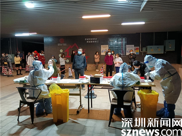 這天,老圍社區(qū)某棟樓全員檢測,社區(qū)緊急設立了臨時檢測點,社區(qū)黨委書記許少瓊忙前忙后指揮布置現(xiàn)場,調度管理處通知住戶下樓采樣,所有社區(qū)工作人員緊急行動起來,醫(yī)務人員也很快就位,居民積極配合,采樣工作有序進行。