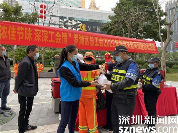 讀特客戶端·深圳新聞網(wǎng)2022年1月25日訊(記者 劉嘉敏 通訊員 王驚鴻)1月25日,羅湖區(qū)總工會組織開展“溫情年·濃濃佳節(jié)味 深深工會情”新春關(guān)愛主題活動。在中國傳統(tǒng)節(jié)日小年的當(dāng)天,為快遞員、外賣配送員、環(huán)衛(wèi)工人、建筑工人、執(zhí)勤交警、堅守崗位的普通職工等戶外勞動者送上熱騰騰的八寶粥和餃子,以此拉開了“羅湖工會陪你留深過大年”2022年關(guān)愛來深建設(shè)者新春系列活動的帷幕。