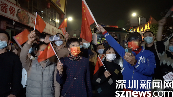 隨著“解封”時刻的臨近,現(xiàn)場氣氛高漲,封控區(qū)內(nèi)“深圳加油”的口號與封控區(qū)外“《我和我的祖國》大合唱”愈發(fā)嘹亮。