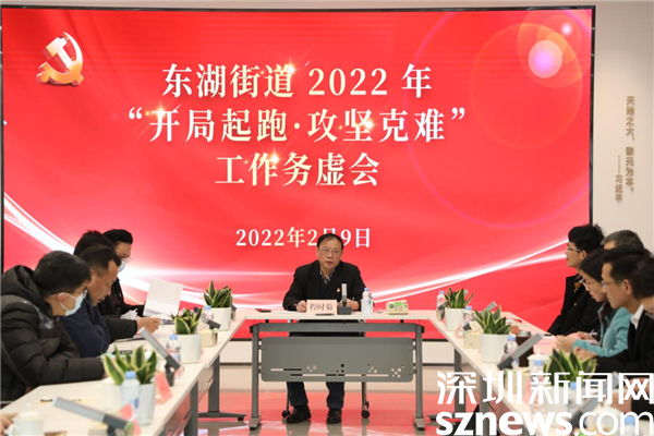 讀特客戶(hù)端·深圳新聞網(wǎng)2月10日訊(記者 謝秋平 通訊員 魏官明 陳惠冰)開(kāi)局就要爭(zhēng)先,起跑就是沖刺。2022年2月9日,羅湖區(qū)東湖街道召開(kāi)2022年“開(kāi)局起跑·攻堅(jiān)克難”工作務(wù)虛會(huì),再次傳達(dá)學(xué)習(xí)羅湖區(qū)2022年“開(kāi)局起跑·攻堅(jiān)克難”干部大會(huì)會(huì)議精神,認(rèn)真統(tǒng)籌謀劃2022年街道攻堅(jiān)克難任務(wù),統(tǒng)一思想、凝聚合力,苦干實(shí)干、創(chuàng)新躍進(jìn),全面吹響高質(zhì)量發(fā)展的進(jìn)軍號(hào),邁出奮力建設(shè)“幸福街區(qū)、生態(tài)東湖”的堅(jiān)實(shí)步伐。會(huì)議由東湖街道黨工委書(shū)記程時(shí)菊主持,街道全體處級(jí)領(lǐng)導(dǎo),各辦(中心)正科實(shí)職干部、各社區(qū)黨委書(shū)記參加了會(huì)議。