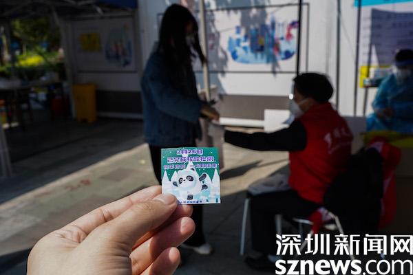 在桂園海翔廣場(chǎng)核酸檢測(cè)點(diǎn),完成檢測(cè)后會(huì)收到工作人員發(fā)放的印有“冰墩墩”圖畫的當(dāng)日“已檢”貼紙。