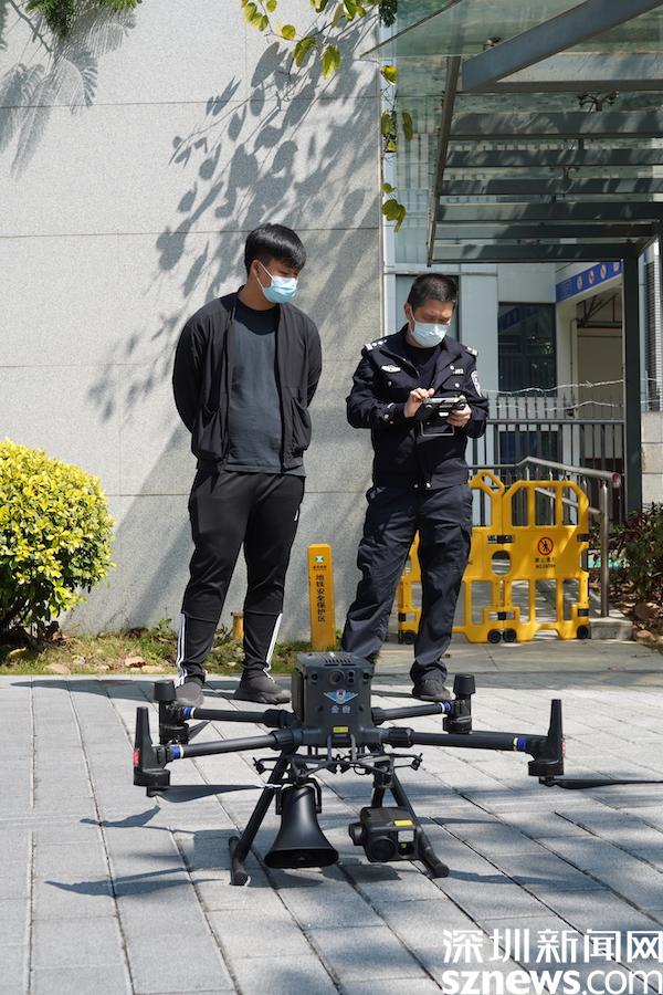 “為了您和家人的健康,所有在桂園街道轄區(qū)工作、生活的居民,從2月24日起連續(xù)4天實(shí)行全員核酸檢測(cè),4天4檢。轄區(qū)內(nèi)所有物業(yè)小區(qū)、商業(yè)樓宇、市場(chǎng)等場(chǎng)所均設(shè)置卡口,人員進(jìn)入需掃描“場(chǎng)所碼”……”中午,記者在桂園街道鹿苑小區(qū)外見到,民警與無(wú)人機(jī)飛手正操控著一款“神兵利器”,助陣疫情防控,空中喊話管控、防范區(qū)居民,快速傳遞最新防疫信息。