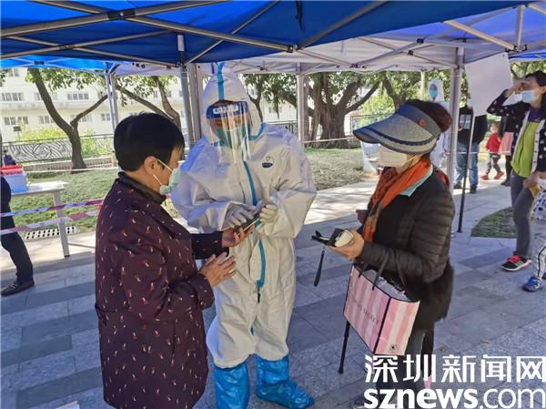 其中有一位長期堅持不懈來做志愿者的老黨員黃妙仙,尤為讓人感動。由于家住得遠(yuǎn),每回過來公交、地鐵需輾轉(zhuǎn)3趟,近一個半小時,從街道雅士居的核酸檢測點到玉龍社區(qū)的金湖公園核酸檢測點,只有她有空,從未缺席。手肘尚未痊愈就匆匆趕來,只因看到報名的人數(shù)不夠;寒夜里鞋襪濕透仍在堅持,只因未到換崗時間。每回勸她多點休息,她總說我是黨員,還是支委,應(yīng)該多做的。