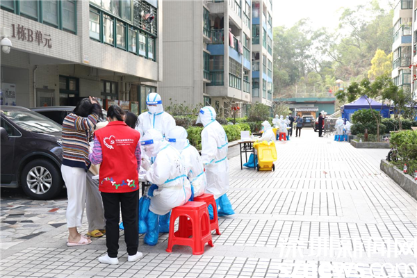 2月28日早上,蓮塘街道各社區(qū)集結(jié)工作人員支援長嶺社區(qū),每個樓棟由長嶺社區(qū)黨委委員“一對一”掛點,幫助居民采購配送物資,協(xié)助核酸檢測排查、流調(diào)排查、生活垃圾清理等,全力保障小區(qū)住戶日常生活需求。據(jù)蓮塘街道工作人員介紹,為保證核酸采樣快速、高效,長嶺社區(qū)每棟樓樓下都安排了一個核酸采樣點,助力核酸檢測采樣工作有序開展。