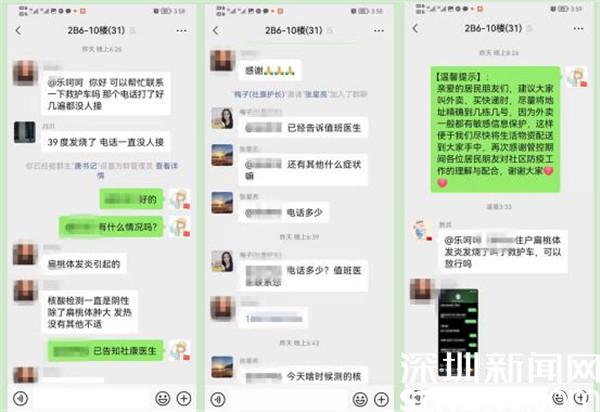 “疫情發(fā)生以來,長嶺社區(qū)全體工作人員通宵達旦全力抗疫,力爭跑在疫情前,第一時間按樓棟、分單元建立8個居家隔離服務微信群,社區(qū)工作人員和志愿者進入每個單元群收集居民的各種服務需要,并及時回復。之前,有工作人員在給外賣消毒中發(fā)現(xiàn)有感冒消炎藥物,立即打電話咨詢,得知有位居民出現(xiàn)扁桃體發(fā)炎引發(fā)高燒,隨及在居家隔離服務微信群請求支援,開通24小時專線服務,讓居民能夠及時就醫(yī)”。