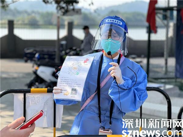 在大望體育公園核酸檢測點(diǎn),身穿藍(lán)色防護(hù)服的吳連英舉著核酸檢測二維碼,站在居民隊(duì)伍中,一邊耐心地引導(dǎo)居民操作,一邊還不忘回答居民的問題。身材嬌小的她,在隊(duì)伍中站得筆直;眼疾手快的動作,是社工隊(duì)伍里有名的“高效率”;和藹可親的語氣,讓居民們親切地稱呼她為“阿英”。