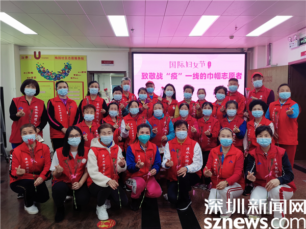讀特客戶端·深圳新聞網(wǎng)2022年3月8日訊(記者 郭含笑 通訊員 張亮亮)自疫情防控阻擊戰(zhàn)打響以來,深圳市羅湖區(qū)清水河街道梅園社區(qū)“讓愛飛翔”志愿服務(wù)隊的巾幗志愿者們不懼辛苦,化身“藍精靈”日夜堅守在社區(qū)疫情防控一線,為社區(qū)筑起了疫情防控的“最美防線”。在“三八”國際婦女節(jié)到來之際,梅園社區(qū)黨委、社區(qū)婦聯(lián)、深圳市東西方社工服務(wù)社駐梅園黨群服務(wù)中心開展抗疫巾幗志愿者慰問活動,為一直默默守護梅園社區(qū)的“紅色娘子軍”送去節(jié)日的問候和祝福。