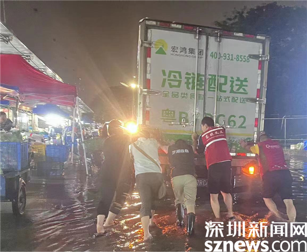在蘭花社區(qū)豐湖大廈果蔬集散市場,有三輛農產(chǎn)品運輸車拋錨,在接到求助信息后,蘭花社區(qū)黨委副書記鄒添文和其它值班同事立即趕往現(xiàn)場,冒雨將車輛推離市場?!皬?月11日上午9點,到5月12日上午9點,我一直在崗。我們對社區(qū)進行了全面排查,確保暴雨期間居民的生命和財產(chǎn)安全?!编u添文在接受記者采訪時表示,“凌晨三點,我們還在市場處理拋錨車輛,那時候也是雨勢最為迅猛的時候,雖然大家都變成了落湯雞,身上又冷又膩特別難受,但是看到車輛成功駛離,還是很有成就感的?!?/p>