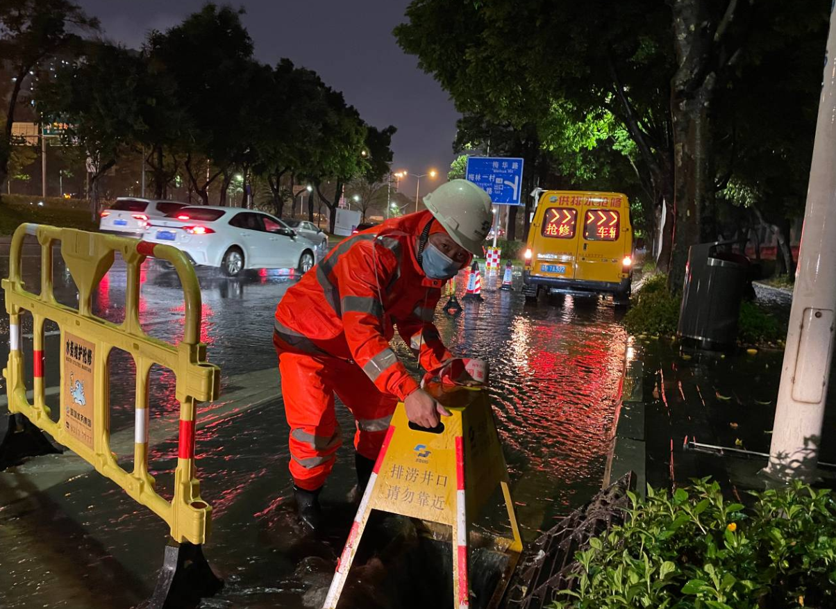 風雨中,穿著“熒光黃”的深圳交警,或堅守崗位、疏導交通;或頂風冒雨前行,巡查處置易積水路段情況;或聞令而動,沖上街頭幫助司機和群眾處理緊急情況,讓大家平安回家。穿著藍色制服的地鐵工作人員,針對重點防汛部位開展巡查值守,配置防汛物資,并采取了暫停部分線路或區(qū)段運行、關閉部分車站或車站出入口的應急措施。“小橙人”在雨中巡查橋梁及邊坡,排除安全隱患;對水質進行取樣,嚴防生活飲用水遭到污染。海事部門全面加強強對流天氣防御工作,各區(qū)密集開放避難場所、妥善安置有需要的群眾,廣大市民遵守規(guī)定按時“做核酸”、發(fā)現(xiàn)險情立即報告、在風雨中救助他人、做好個人防護等等,各行各業(yè)守土盡責,相互配合,不斷筑牢抗擊暴風雨的防線。