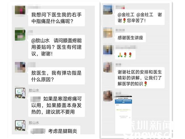 原來,老圍社區(qū)黨群服務(wù)中心的社工在服務(wù)中發(fā)現(xiàn),社區(qū)中不少中老年人有著各種各樣的關(guān)節(jié)疼痛,時(shí)不時(shí)并病痛折磨。在老圍社區(qū)黨委和老年協(xié)會(huì)的大力支持下,社工開展了這場線上活動(dòng),邀請深圳博愛曙光醫(yī)院外科醫(yī)生敖山水免費(fèi)為社區(qū)居民講解關(guān)節(jié)炎的防治,幫助居民保護(hù)好關(guān)節(jié),管理好健康,讓今后的生活更優(yōu)質(zhì)。