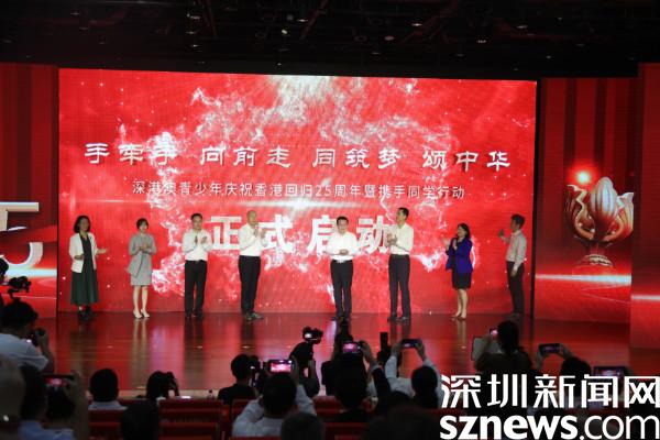 香港教育局局長(zhǎng)楊潤(rùn)雄,澳門教育及青年發(fā)展局副局長(zhǎng)黃嘉祺,深圳市委教育工委副書記、市教育局黨組成員楊平分別致辭,充分肯定了攜手同學(xué)行動(dòng)對(duì)深港澳文化交流的貢獻(xiàn),并希望未來三地能有更加深入、密切的聯(lián)系,互惠雙贏,切實(shí)增強(qiáng)深港澳青少年的民族自豪感和凝聚力。隨后,領(lǐng)導(dǎo)與港澳青年代表上臺(tái)啟動(dòng)深港澳青少年慶祝香港回歸25周年系列活動(dòng)。