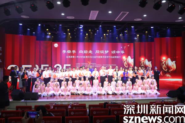 讀特客戶端·深圳新聞網(wǎng)2022年5月25日訊(記者 謝秋平 通訊員 周文干)5月25日下午,由深圳市教育局、深圳海外聯(lián)誼會(huì)主辦,深圳市羅湖區(qū)教育局、深圳羅湖海外聯(lián)誼會(huì)、深圳市羅湖區(qū)教育科學(xué)研究院承辦,香港深圳青年總會(huì)、深圳工程師聯(lián)合會(huì)、深圳市羅湖中學(xué)協(xié)辦的“深港澳青少年慶祝香港回歸25周年暨攜手同學(xué)行動(dòng)成果展”在深圳市羅湖中學(xué)舉行?;顒?dòng)以“手牽手,向前走,同筑夢(mèng),頌中華”為主題,展示了深港澳少年攜手同學(xué)行動(dòng)的系列成果。深圳市委統(tǒng)戰(zhàn)部二級(jí)巡視員周文軍,深圳市委教育工委副書記、市教育局黨組成員楊平,羅湖區(qū)委常委、統(tǒng)戰(zhàn)部部長(zhǎng)黃劍峰參加活動(dòng),香港教育局局長(zhǎng)楊潤(rùn)雄、澳門教育及青年發(fā)展局副局長(zhǎng)黃嘉祺通過網(wǎng)絡(luò)連線方式參與活動(dòng)?;顒?dòng)在羅湖教育云平臺(tái)全程直播,深港澳三地100多所學(xué)校通過線上直播觀看。