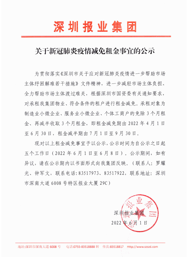 附件:深圳報(bào)業(yè)集團(tuán)2022年物業(yè)出租“三減三免”租戶名單
