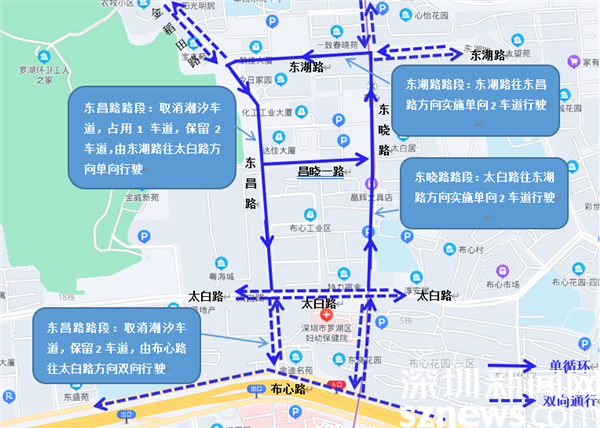 公交線路調(diào)整。東昌路等片區(qū)道路實(shí)施小范圍單循環(huán)后,涉及東昌北(南往北方向)站點(diǎn)、翠園中學(xué)東曉校區(qū)(東往西方向)站點(diǎn)過往29路、64路、83路、M329路等公交線路調(diào)整至東曉路臨時(shí)站點(diǎn)。市交通運(yùn)輸局羅湖管理局主動(dòng)協(xié)調(diào)上級(jí)主管部門發(fā)布公交線路臨時(shí)調(diào)整公告,提醒市民東昌路涉路施工臨時(shí)調(diào)整公交線路行車方向。