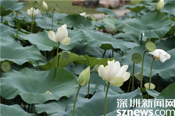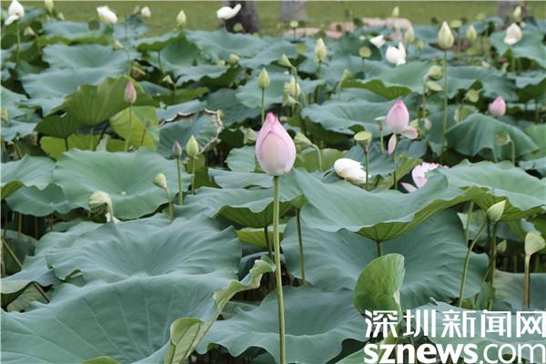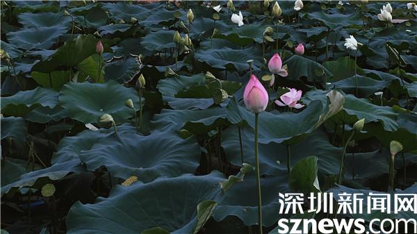 讀特客戶(hù)端·深圳新聞網(wǎng)2022年6月16日訊(記者 劉嘉敏 邱婕)近日深圳迎來(lái)連綿雨季,適逢六月夏至將至,深圳市洪湖公園百畝荷塘相繼盛放。當(dāng)花期遇到了雨季,在一張張荷葉的簇?fù)硐拢苫ㄈ缙谑㈤_(kāi)。6月15日,深圳新聞網(wǎng)記者走進(jìn)洪湖公園,只見(jiàn)一派“接天蓮葉無(wú)窮碧、映日荷花別樣紅”的景色,讓人大飽眼福。