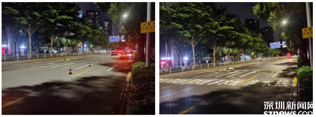 文錦南路區(qū)政府門口涉水線施工前后對(duì)比