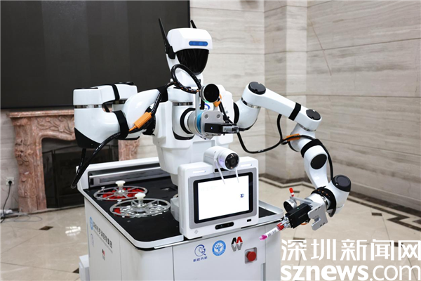 據(jù)悉,該款命名為“鵬程青耕”二代的高性能移動協(xié)作機器人產(chǎn)品由深圳市羅湖醫(yī)院集團牽頭,深圳墨影科技有限公司、深圳市人工智能與機器人研究院(AIRS)合作研發(fā)。該研發(fā)團隊由羅湖醫(yī)院集團孫喜琢博士任總負(fù)責(zé)人,覃金洲博士為醫(yī)療示范總執(zhí)行,墨影公司楊一鳴博士負(fù)責(zé)機器人及核心硬件自動化集成,AIRS 張?zhí)硗┦控?fù)責(zé)核心算法。