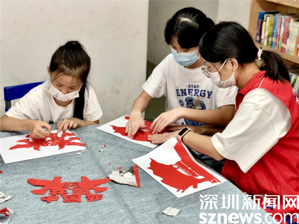 此外,在活動(dòng)現(xiàn)場(chǎng)還安排了紅色主題手工剪紙活動(dòng),孩子們一手拿著剪刀,一手拿著紙認(rèn)真專注地剪出和平鴿、天安門(mén)、五星紅旗等各式各樣的作品,現(xiàn)場(chǎng)氣氛熱烈濃厚。
