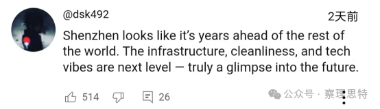 (“深圳看起來比世界其他地方領(lǐng)先好幾年?;A(chǔ)設(shè)施、清潔度和科技氛圍都是一個(gè)新的水平——真正讓人看到了未來?!保?/p>
