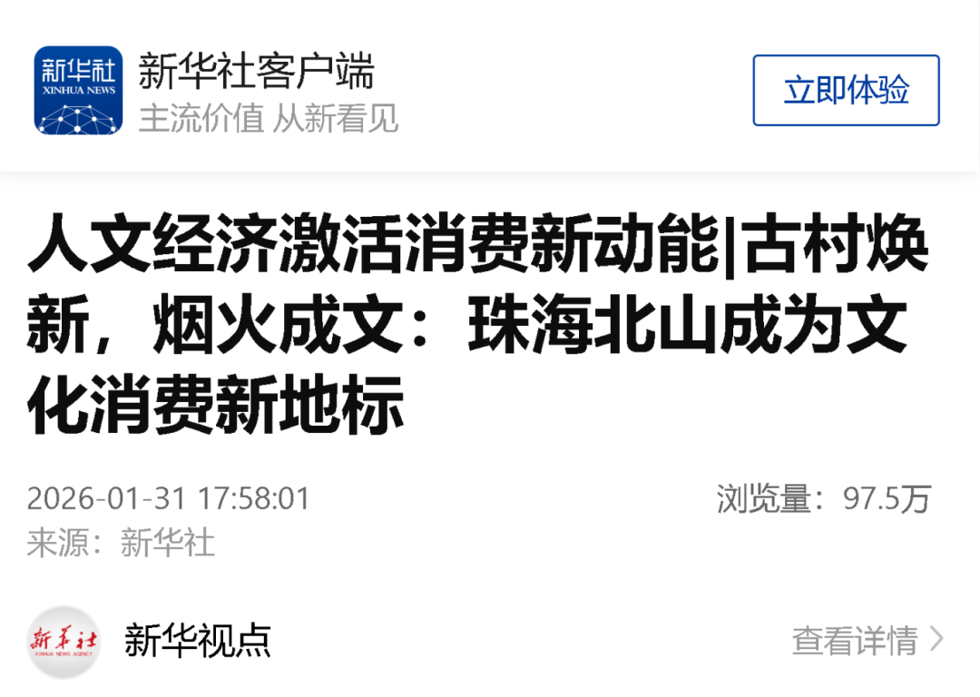 珠海北山成為文化消費新地標(biāo)》長文,