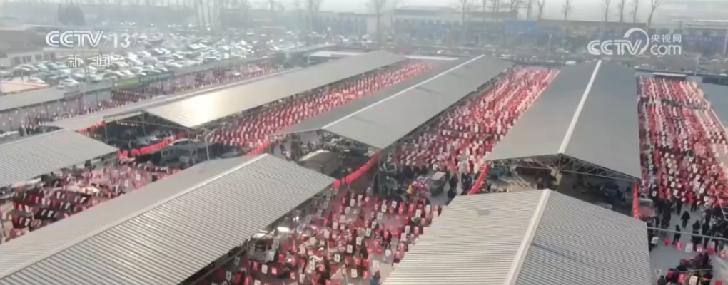 2月14日是臘月二十七,民諺說“二十七,趕大集”,春節(jié)前大家都在熱熱鬧鬧的趕集忙年,大集里四面八方匯入人潮連綿,長街迤邐,攤肆駢連,有蔬青果艷,羅列階前,有糕香浮暖,酒意微甜,還有童呼稚鬧,翁語媼言,籃攜筐負,往來熙然。在這熙攘與喧騰之中,流淌著中國人對“年”的歡喜,一歲將闌,吉慶綿延。接下來,我們跟隨鏡頭到各地的年貨大集上徜徉流連。