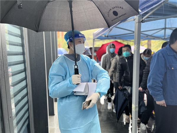 自深圳“0215”疫情突發(fā)以來,羅湖東門街道城東社區(qū)負(fù)責(zé)的湖貝社區(qū)公園臨時核酸點再次啟動。核酸點重啟的那天,雨嘩啦啦的下,負(fù)責(zé)人事安排、后勤保障的盧映均在工作群看到入口處的同事僅穿著雨衣服務(wù)居民的照片,舍不得讓站崗的同事長時間淋雨,恨不得自己去扛帳篷,奈何6個月身孕,只能安排現(xiàn)場的同事挪動帳篷,那帳篷沉得要四位男同志才扛得動。