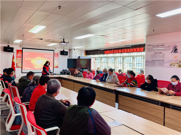 12月1日,深圳市羅湖區(qū)清水河街道梅園社區(qū)黨委、深圳市東西方社工服務(wù)社駐梅園社區(qū)黨群服務(wù)中心開(kāi)展了養(yǎng)老服務(wù)政策宣講會(huì),讓老年群體知悉政策、快樂(lè)養(yǎng)老。
