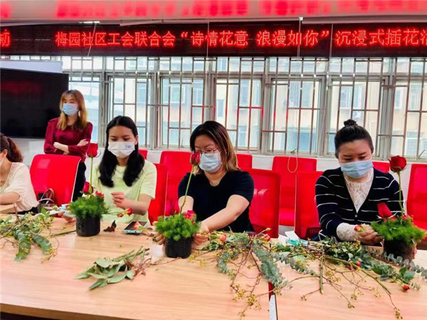 10月19日、21日,深圳市羅湖區(qū)清水河街道梅園社區(qū)工會(huì)聯(lián)合會(huì)、梅園社區(qū)婦聯(lián)、深圳市東西方社工服務(wù)社駐梅園社區(qū)黨群服務(wù)中心的社工聯(lián)合開展了兩場(chǎng)“詩情花意 浪漫如你”沉浸式插花活動(dòng)。