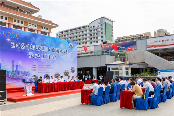4月29日下午,深圳市旅游市場執(zhí)法工作會議在羅湖口岸廣場召開。