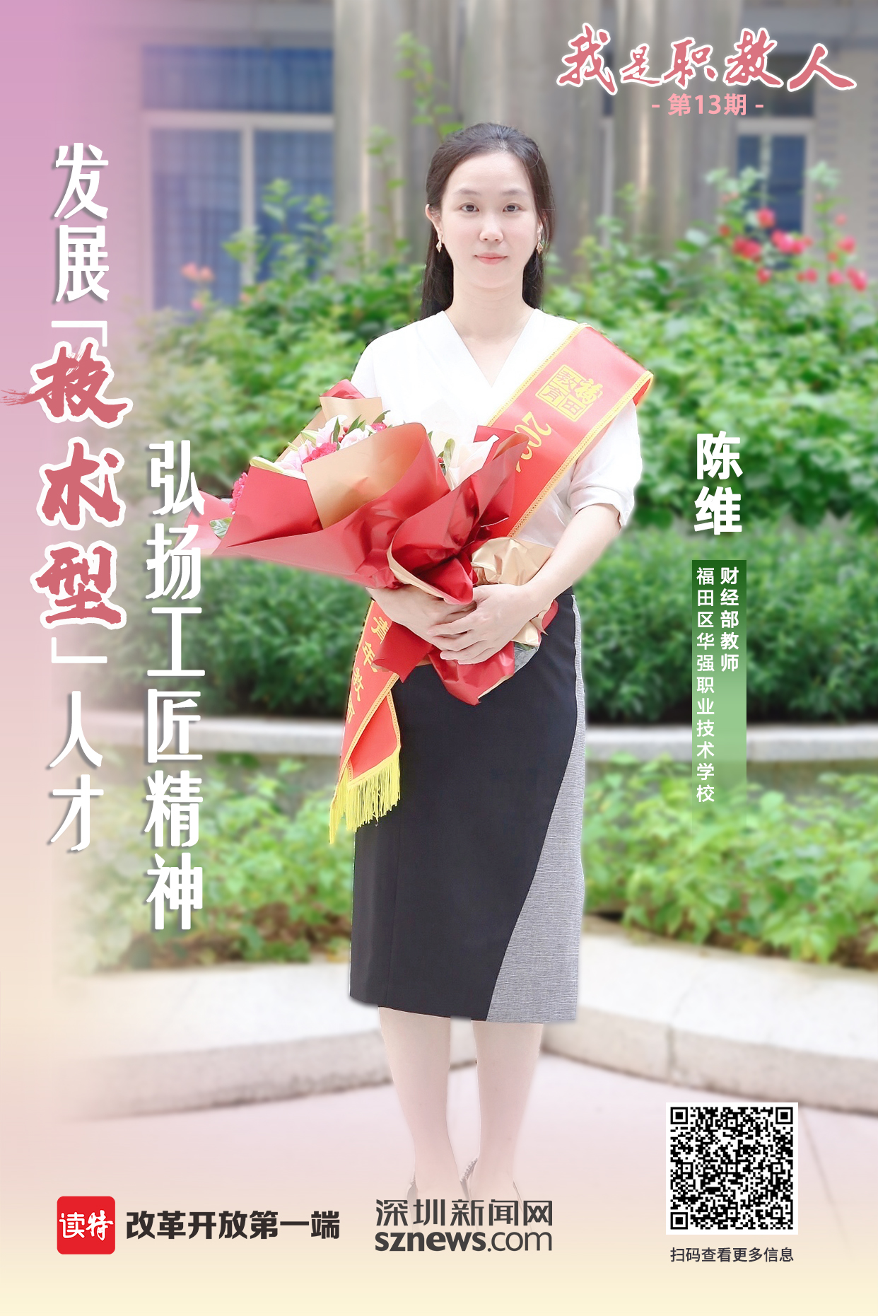 “對生活有熱愛,才會變得有趣;對生活和世界保持好奇心,才能擁有創(chuàng)造力和想象力?!睆氖侣殬I(yè)教育的第十年,深圳市福田區(qū)華強職業(yè)技術(shù)學校財經(jīng)部老師陳維,始終期望學生成為有趣、有技術(shù)、有創(chuàng)造力,能為社會做出貢獻的人。