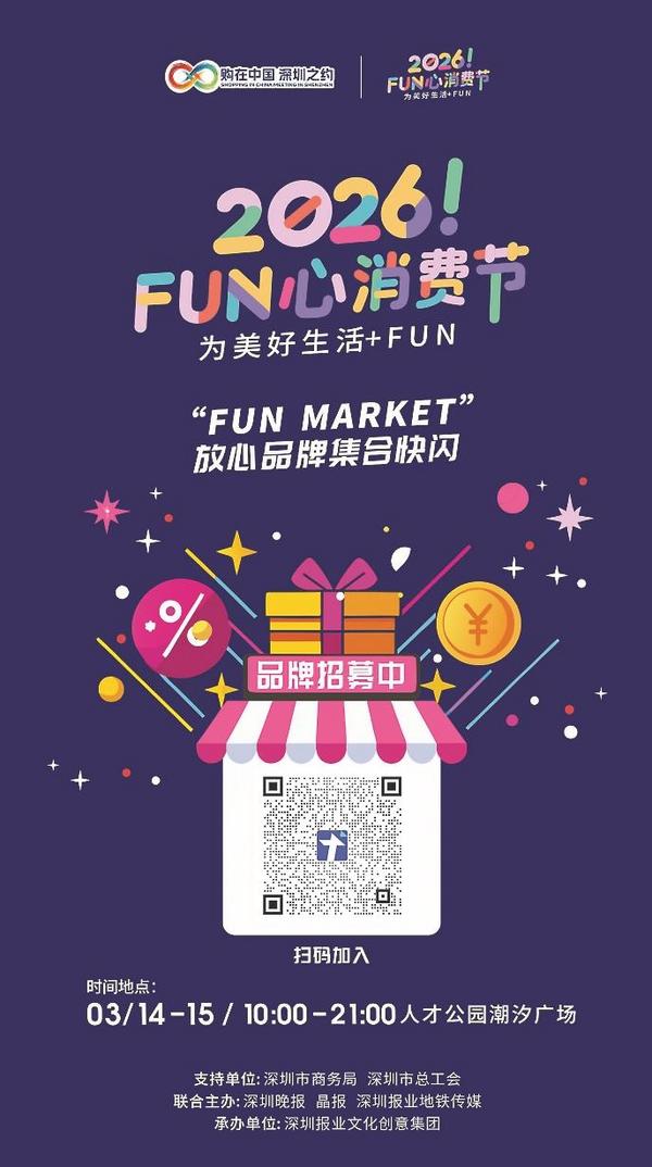2026年3·15國際消費(fèi)者權(quán)益日到來之際,由深圳市商務(wù)局、深圳市總工會支持,深圳報業(yè)集團(tuán)所屬深圳晚報、晶報、深圳報業(yè)地鐵傳媒聯(lián)合發(fā)起舉辦“FUN心消費(fèi)節(jié)”,通過線下品牌市集與線上傳播矩陣聯(lián)動,集中展示一批重誠信、優(yōu)品質(zhì)、強(qiáng)服務(wù)的本土及全國優(yōu)秀商家,打造可感可及的“放心消費(fèi)”樣板場景。