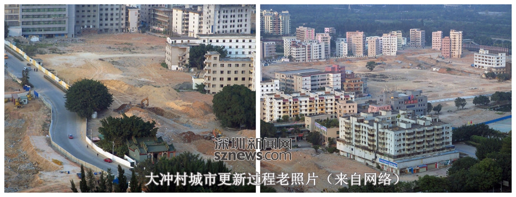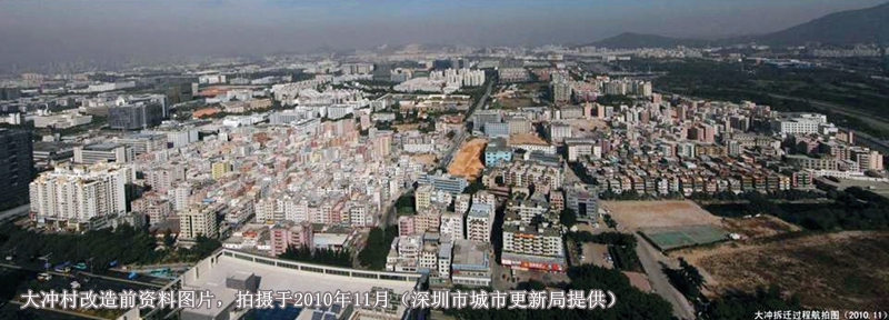 改造前,大沖村現(xiàn)狀用地呈現(xiàn)隨意開發(fā)的“城中村”形態(tài),基礎(chǔ)設(shè)施比較缺乏,建筑密度大,改造難度較大,舊村改造涉及到1000戶左右原居民及300多戶非原居民的動遷、7萬多暫住人口的搬遷、近1500多棟建筑、約110萬平方米的拆除,是深圳市規(guī)模最大的城中村改造項目。