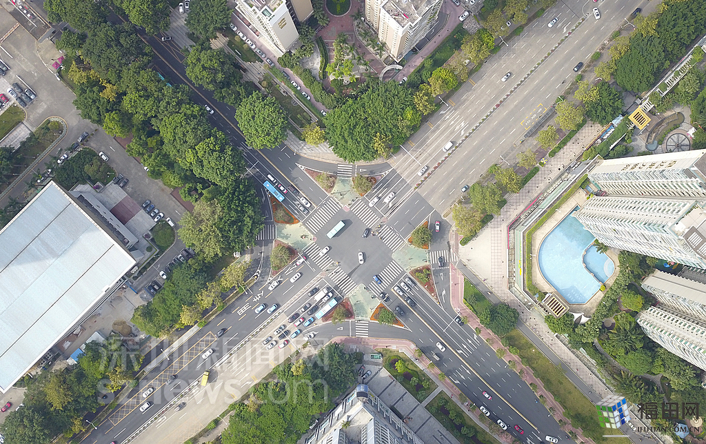 在低空中視野下,路口的交通情況清晰可見。?