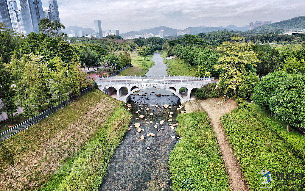 穿園而過的福田河,對中心公園的生態(tài)和景觀有很大的提升。