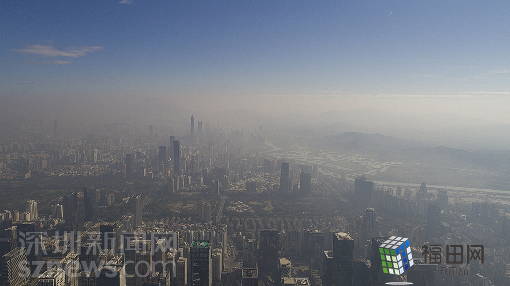 1月18日上午,記者操控?zé)o人機(jī)俯瞰深圳中心區(qū)發(fā)現(xiàn),灰霾將天空“割裂”成一道涇渭分明的界線,把城市籠罩得如同一個充滿霧靄的森林。從平安金融大廈的上空遠(yuǎn)眺,西南面的深圳灣在灰霾的籠罩下變成了一片“沙漠”,東面的京基一百幾乎被灰霾“吞沒”,北邊平時肉眼可看的梅林山也因為能見度較低變得若隱若現(xiàn),南面的米埔濕地也被云遮霧繞。