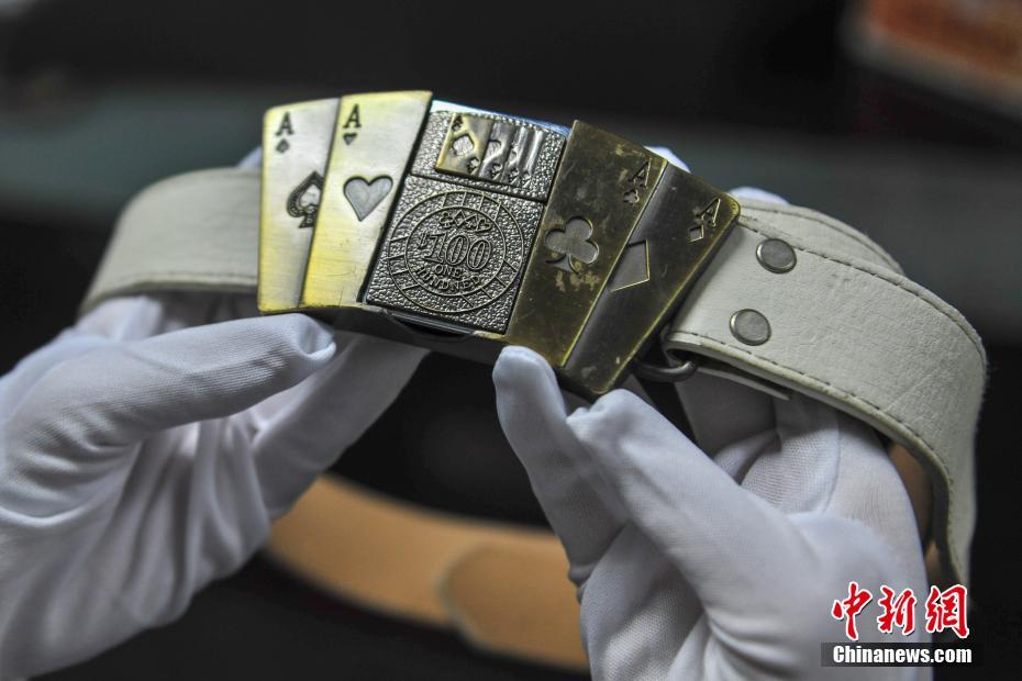 1月30日,遼寧沈陽(yáng),沈陽(yáng)桃仙國(guó)際機(jī)場(chǎng)安檢中心工作人員展示腰帶打火機(jī)。當(dāng)日在沈陽(yáng)桃仙國(guó)際機(jī)場(chǎng),展示了近期被查獲的手機(jī)打火機(jī)、口紅打火機(jī)、腰帶打火機(jī)等各類打火機(jī)10余款。2018年春運(yùn)工作從2月1日即將開(kāi)始,為確保機(jī)場(chǎng)春運(yùn)工作安全、正常、有序,沈陽(yáng)桃仙國(guó)際機(jī)場(chǎng)安檢中心將加大檢查力度,嚴(yán)格執(zhí)行“三品”查堵制度,重點(diǎn)查處夾帶易燃易爆危險(xiǎn)品乘坐飛機(jī)。中新社記者于海洋 攝