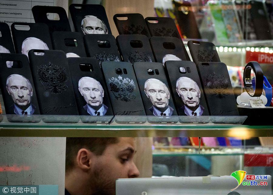 當(dāng)?shù)貢r(shí)間2018年3月13日,俄羅斯莫斯科,俄羅斯大選將于3月18日舉行,大選主題紀(jì)念品熱賣(mài)。