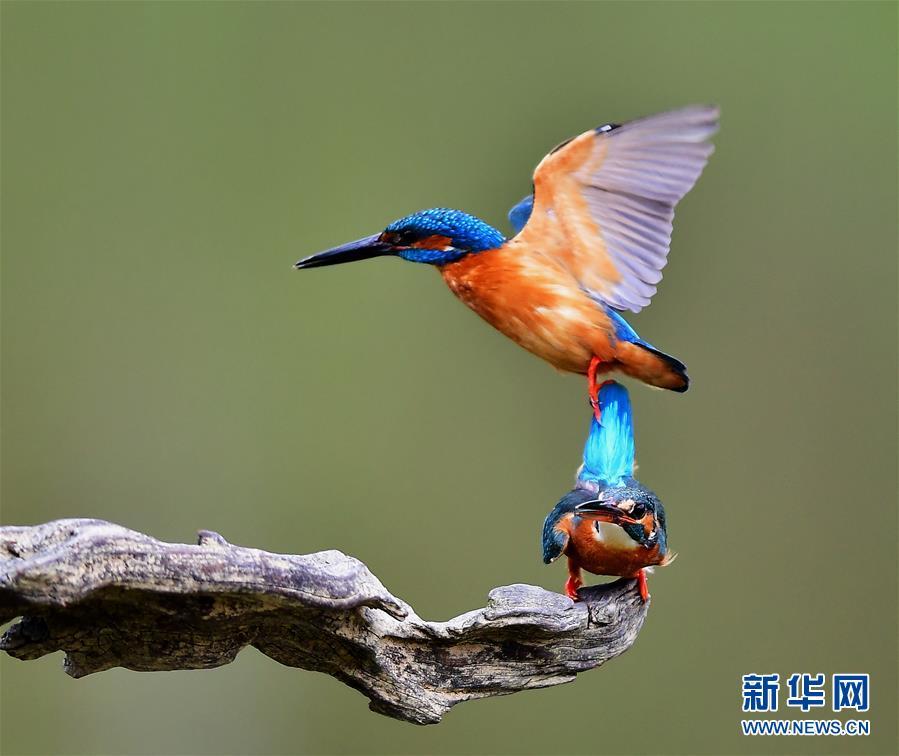4月7日,在福建省福州市旗山國(guó)家森林公園,兩只翠鳥(niǎo)在嬉戲。新華社記者 梅永存 攝