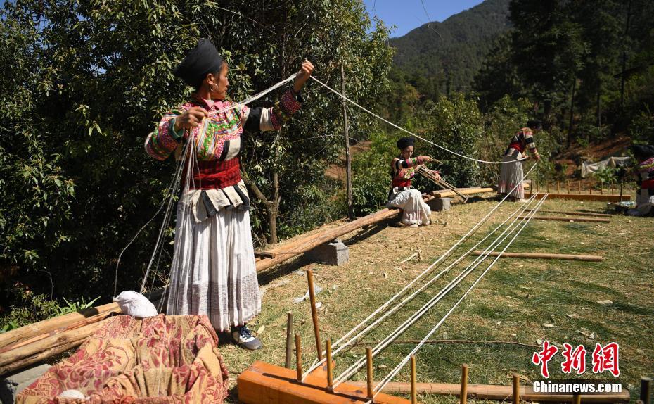 4月11日,傈僳族婦女正在繞麻線。四川涼山德昌縣南山傈僳族鄉(xiāng),一群傈僳族婦女圍坐一起,將火草搓成線與麻線交織一起織布做衣。隨著科技發(fā)展,傈僳族祖祖輩輩傳承的織布技藝面臨著傳承問(wèn)題,當(dāng)?shù)叵Mㄟ^(guò)展示,讓更多的人了解并喜歡純天然的火草麻布。中新社記者劉忠俊 攝
