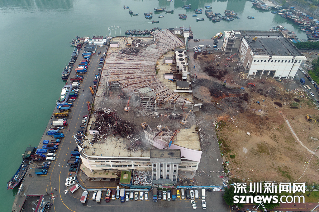圖為4月16日漁人碼頭拆除現(xiàn)場,對(duì)周邊漁船停泊和魚鋪經(jīng)營并未造成影響