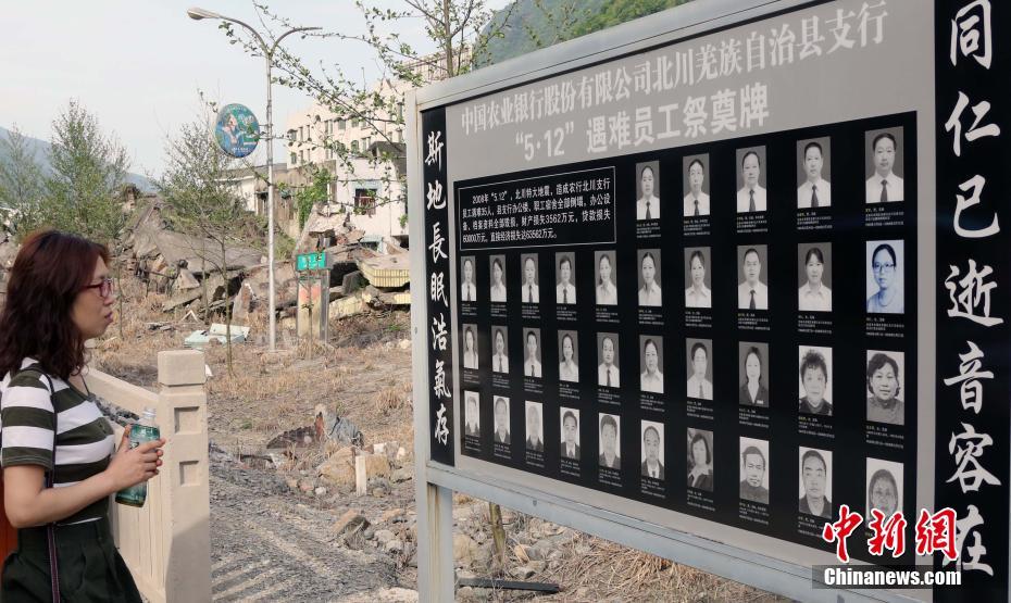 5月初,記者專程前往四川北川,探訪老縣城地震遺址。遺址內(nèi)莊嚴肅穆,不時有民眾參觀悼念。據(jù)管理者介紹,這里每天都有數(shù)百人前往憑吊,節(jié)假日則有數(shù)千人。在這里,保留著地震當時破損的房屋以及修建的遇難者公墓等。在每一個破損的建筑前都設立有當時建筑的使用單位,有的還豎立著遇難者的名單。當日,巧遇了多位當年在北川職業(yè)中學就讀的師生,他們結(jié)伴同行在北川職業(yè)中學遺址悼念在地震中遇難的師生。中新社記者 任海霞 攝