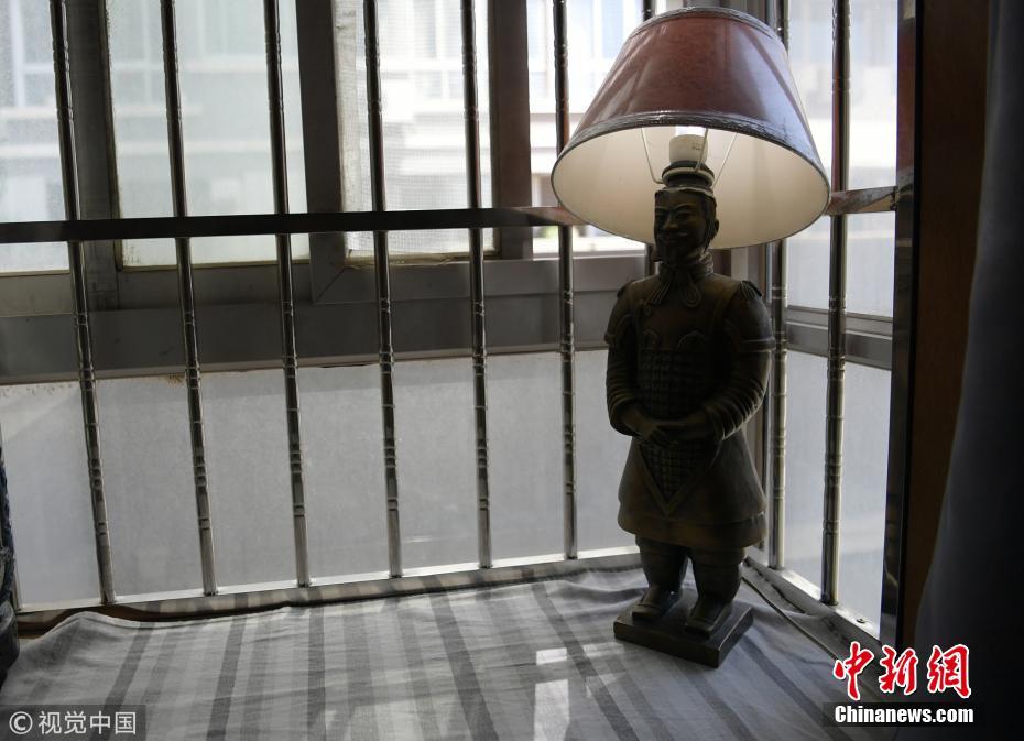 兵馬俑元素在這家民宿里被運(yùn)用在各種小細(xì)節(jié)里,圖為兵馬俑造型的臺(tái)燈。圖片來源:視覺中國(guó)