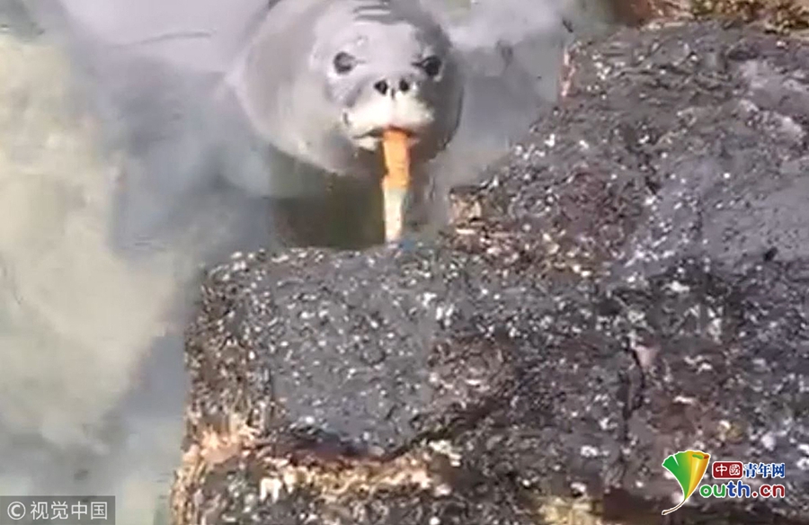 當(dāng)?shù)貢r間2018年4月15日,美國夏威夷,一位保護區(qū)管理員發(fā)現(xiàn)一只小僧海豹銜著一把廢棄匕首的刀柄。這只小僧海豹剛斷奶,海洋哺乳動物中心和自然資源部的工作人員一直都在關(guān)注它。