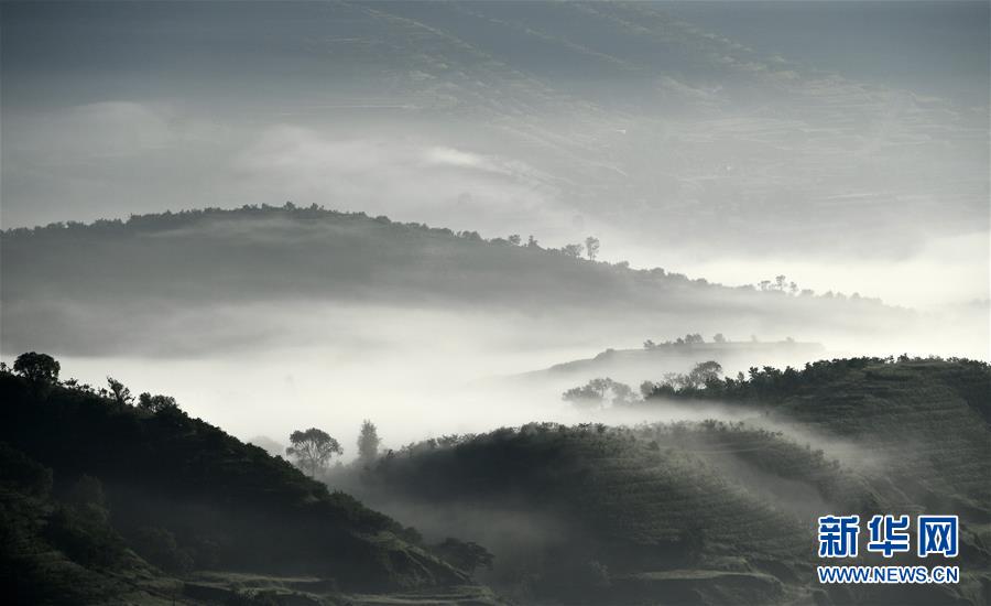近日,寧夏固原市彭陽縣數(shù)十萬畝旱作梯田在曙光中迎來云海景觀,層疊的梯田間云霧繚繞,宛如仙境。據(jù)了解,彭陽縣自1983年建縣以來,始終堅持生態(tài)立縣的理念,積極推進(jìn)植樹造林事業(yè),全縣林木保存面積由1983年的27萬畝,增長到目前的203.87萬畝,森林覆蓋率達(dá)到27.5%。