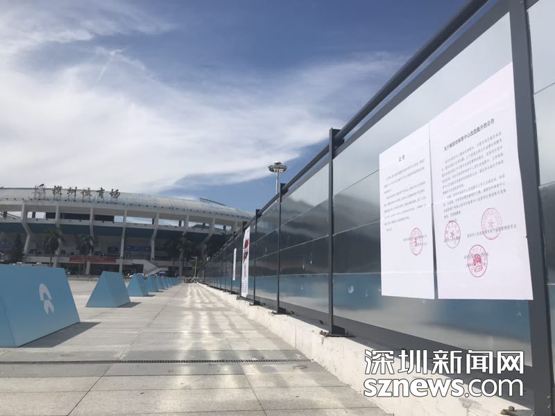 在進(jìn)入深圳體育場的路上,圍擋張貼了改建公告