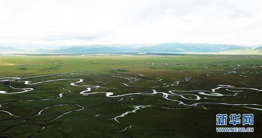 這是瑪曲縣阿萬倉濕地(7月31日無人機(jī)拍攝)。 新華社記者 陳斌 攝