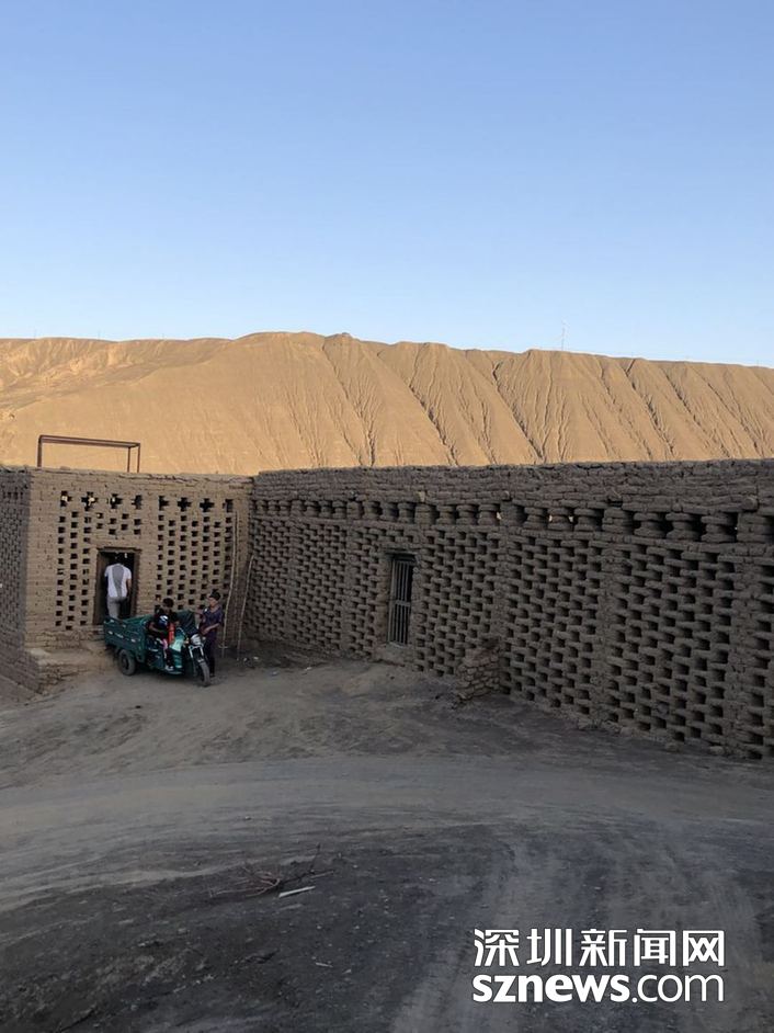 ??? ?在葡萄溝,隨處都可見(jiàn)到土磚砌成的鏤空方格子土屋,構(gòu)成了當(dāng)?shù)匾坏廓?dú)特的風(fēng)景,原來(lái)這是專門用來(lái)晾葡萄干的場(chǎng)地。 趙春麗攝