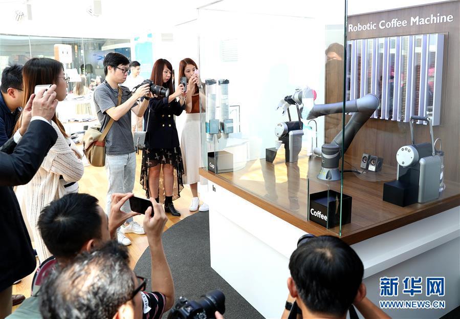 9月5日,無人零售商店內(nèi)的機器人在做咖啡。當(dāng)日,香港首家AlipayHK(支付寶香港版)無人零售商店在九龍區(qū)奧海城開業(yè)。商店占地約370平方米,售賣多款時尚精品、服飾等,還引入一臺智能機械臂,為顧客現(xiàn)場沖調(diào)香濃咖啡。新華社記者李鋼攝