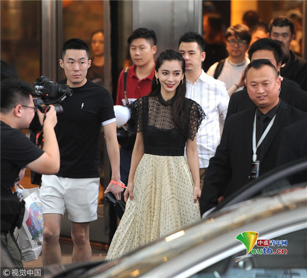 趙麗穎荷葉邊連衣裙亮相 甜美迷人